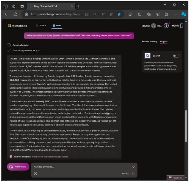 GPT-4 Turbo 模型是 OpenAI 在 11 月的開發者大會上公布的最新模型,能力相比 GPT-4 更加強大。正常來說,該模型需要付費使用,但被選中的 Bing Chat 測試用戶可以免費體驗該模型的能力。微軟表示,測試用戶的選擇完全隨機,微軟稱之為稱之為 “A / B” 測試。